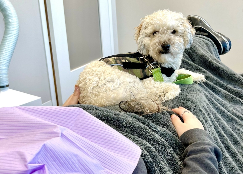 Mr. Manchego is a certified full-access service dog. He’s a hypoallergenic cockapoo. His natural calm and healing demeanor soothes all. Manchego takes his Therapy Dog responsibility very seriously; when wearing his work-vest, he’s “on-duty” and happy to bring tranquility to our patients. His hobbies include walking with his momma (Dr. Thompson) to get their 10,000 steps-a-day, traveling to all of Dr. Thompson’s continuing education courses with her, adventuring in kayaks, playing at parks, chasing things smaller than him, and squeaking the heck out of his batman toy.
